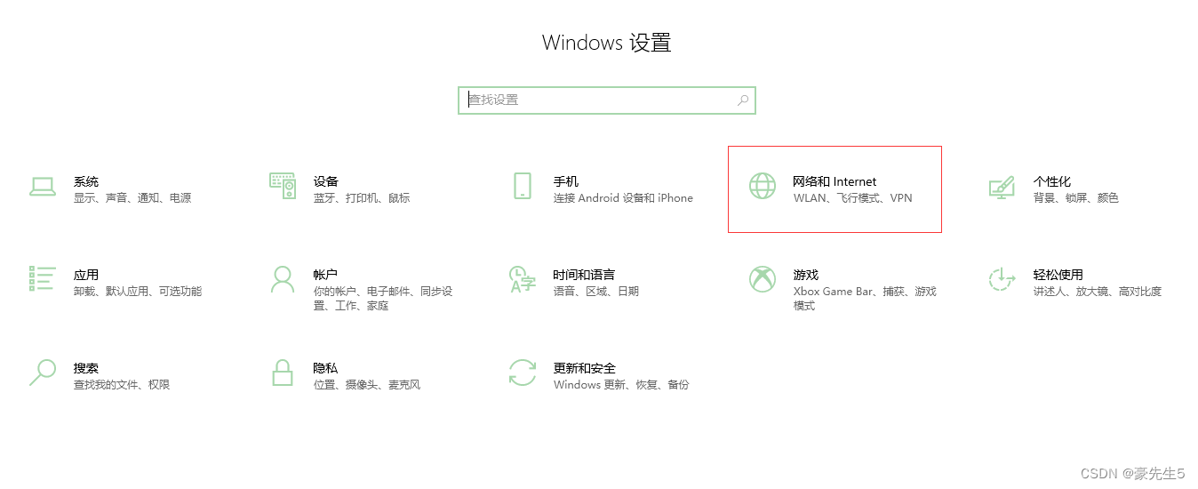 选择-【网络和Internet】