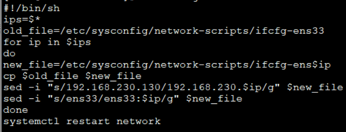 3.由于配置多个ip使用上述过程过于麻烦,这里使用shell脚本编写一个可以配置多个ip的脚本。