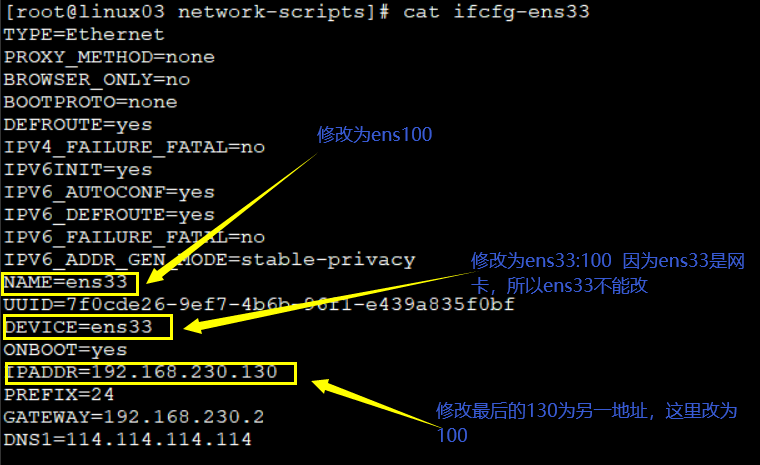 cp ifcfg-ens33 ifcfg-ens100