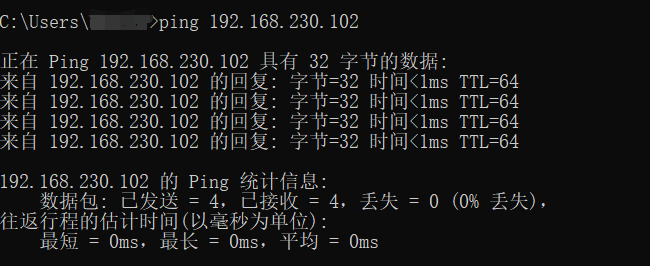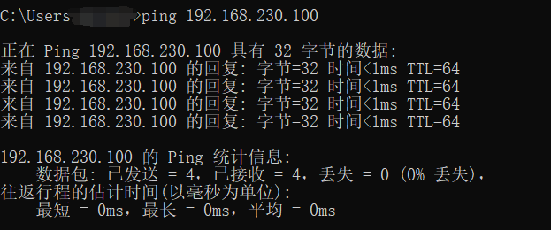 步骤五:在本机cmd进行ping测试