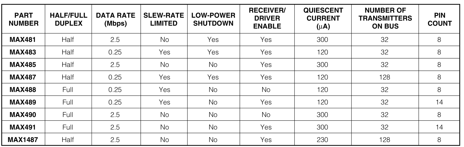 the MAX481, MAX483, MAX485, MAX487, and MAX1487