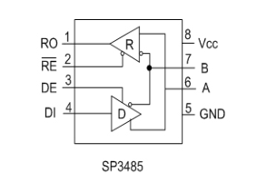 是一款国产RS485芯片,应用于 RS-485 和 RS-422通信系统的收发芯片。MAX485 传输和接收的数据传输率可高达 2.5Mbps。485 为半双工型。另外,485 有驱动使能(DE)和接收使能(RE)管脚,当关闭时,驱动和接收输出为高阻。MAX485 具有失效保护功能,在处于接收状态时,输入端开路或短路接收器输出为高电平。
