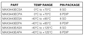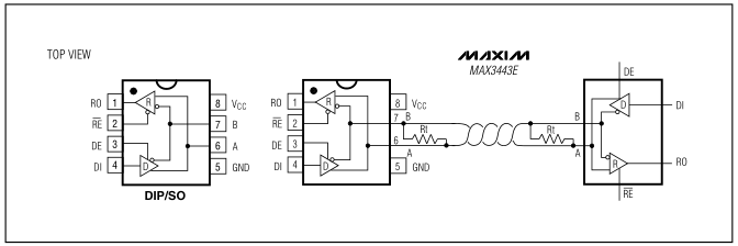 The MAX3443E is available in 8-pin SO and PDIP packages, and is specified over commercial, industrial, and automotive temperature ranges.