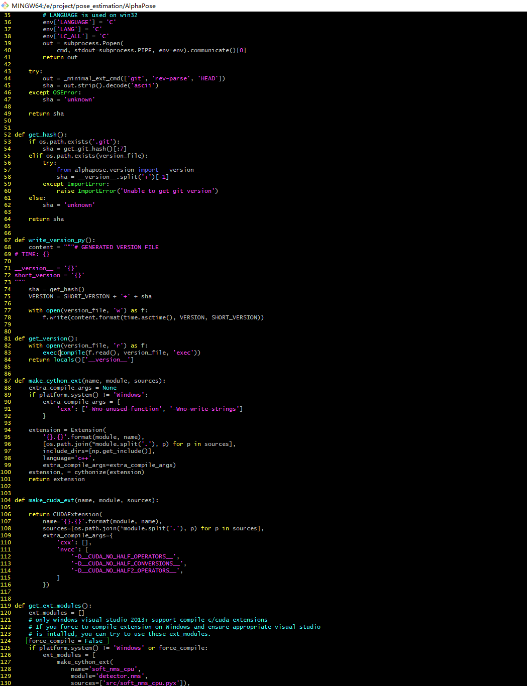 于是我打开alphapose/setup.py,果然在第124行发现:force_compile = False