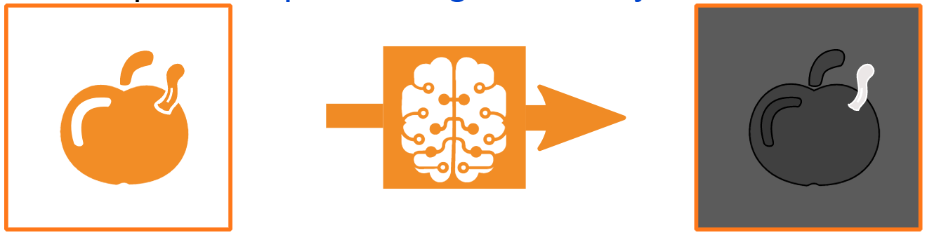 异常检测的一个可能的例子:给输入图像的每个像素分配一个分数,表示它显示未知特征(即异常)的可能性有多大
