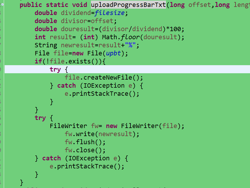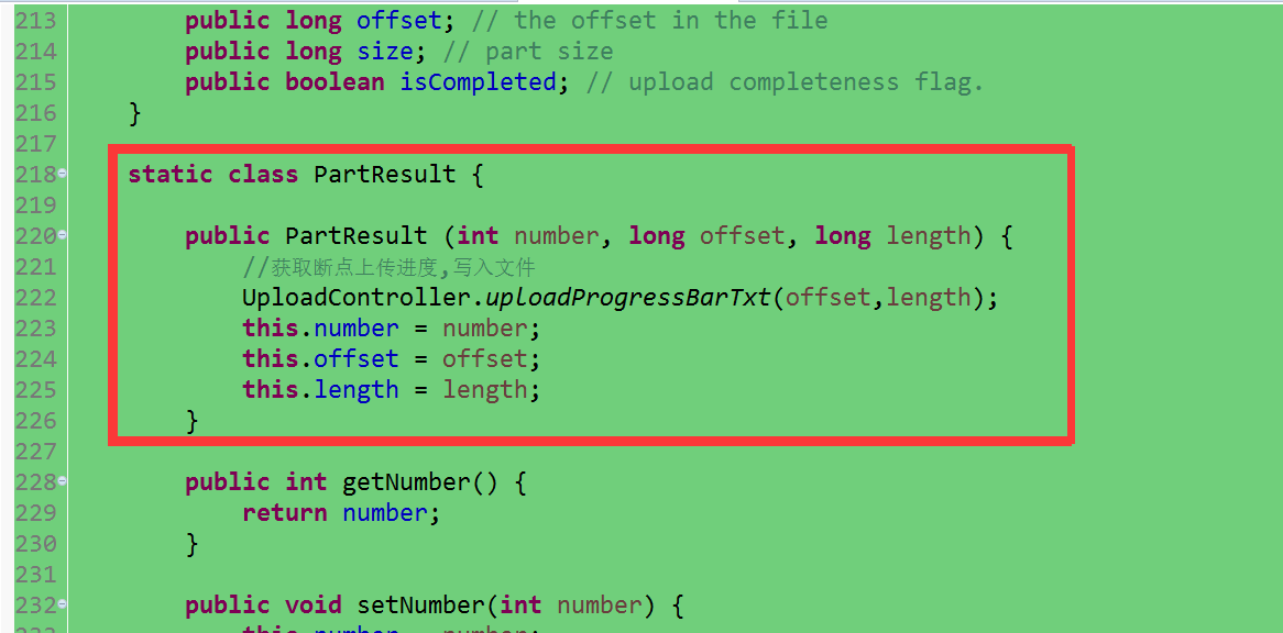 具体的原因细节,也不是我这种菜鸟一句话,两句话能说明白的,结果:就是每次oss上传成功后,都会调用这个方法,number是分片序号,offset是已上传成功的总进度,length是每次上传的进度.因为他这是个静态的,所以我写了一个静态的方法,