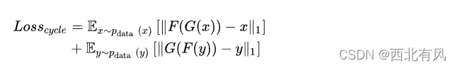 为了做到这一点,论文作者提出了Cycle Consistency Loss,即将图片y'再放入生成器 F中,产生的新图片X' 和最开始的图片 X 尽可能的相似