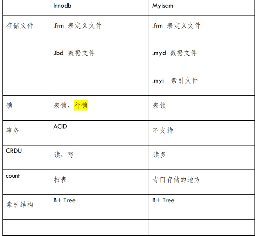 Innodb与Myisam的区别: