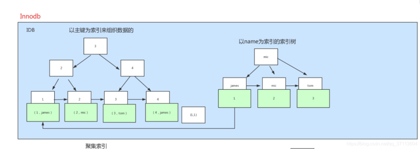 Inoodb与Myisam下的索引存储图: