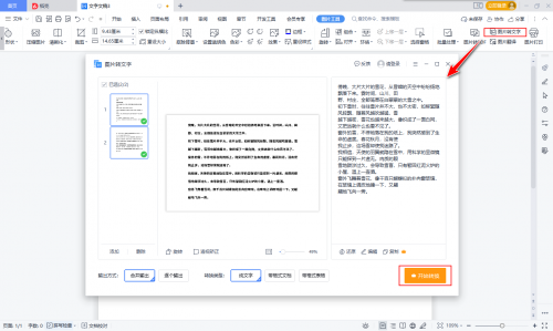 第二步:上传图片后,找到【图片工具】栏下方的【图片转文字】功能,就会弹出文字识别转换窗口,设置转换参数并点击【预览效果】查看转换好的文字内容,觉得可以的话点击【开始转换】按钮即可。