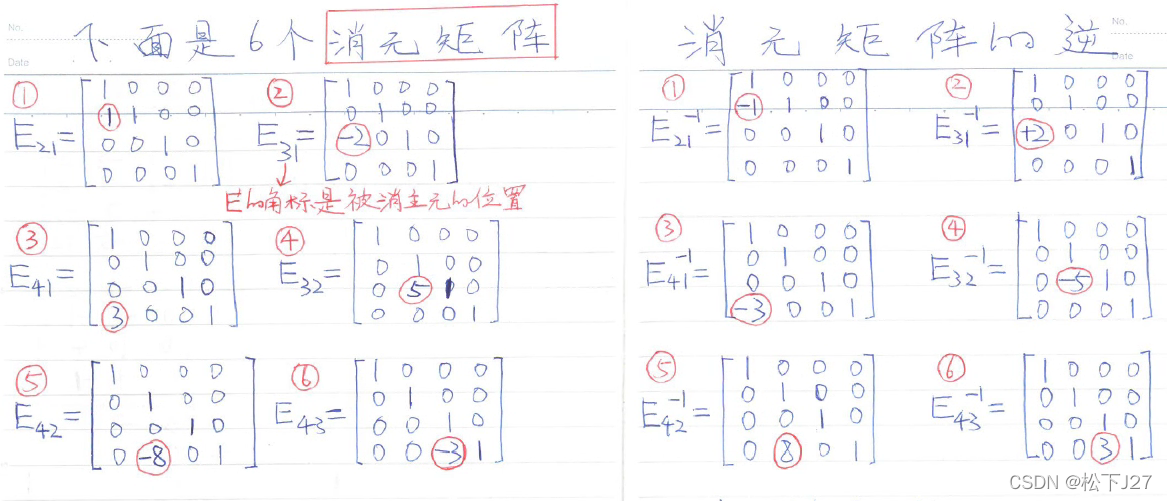 最后,每一个消元矩阵Eij都是可逆的。而他的逆的计算也非常方便,只需改变消元位置所对应的符号就行了,这在我自己的笔记中也有详细的说明。