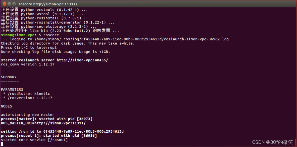 如果出现下图所示,那么说明ROS正常启动了!