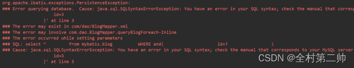 2、动态查询之foreach报错: