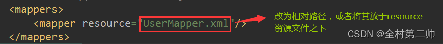 ### Cause: org.apache.ibatis.builder.BuilderException: Error parsing SQL Mapper Configuration. Cause: java.io.IOException: Could not find resource UserMapper.xml