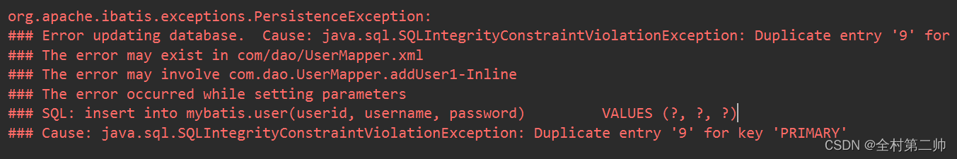 6、org.apache.ibatis.exceptions.PersistenceException: