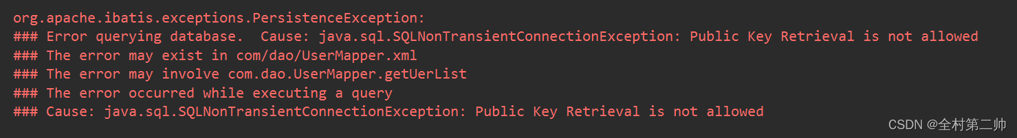 解决方案:useSSL建立了不安全的连接,系统不允许检索公钥