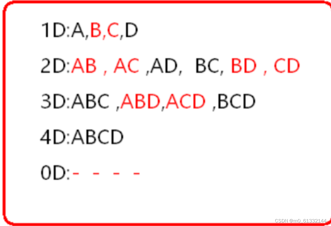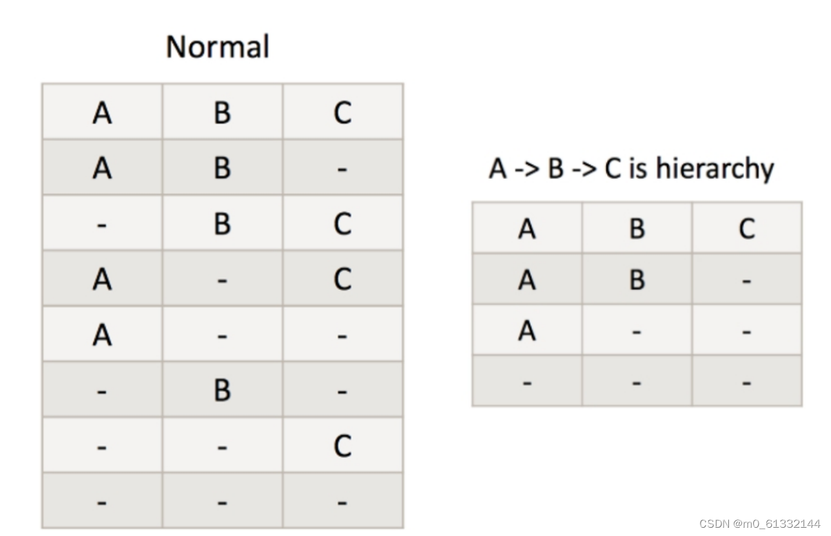 例子:如有 A B C D 四个维度, B C维度作为联合维度,则最后只要生成7个维度,如下图所示:其中红 色维度为无需生成的维度,黑色维度为需要生成的维度