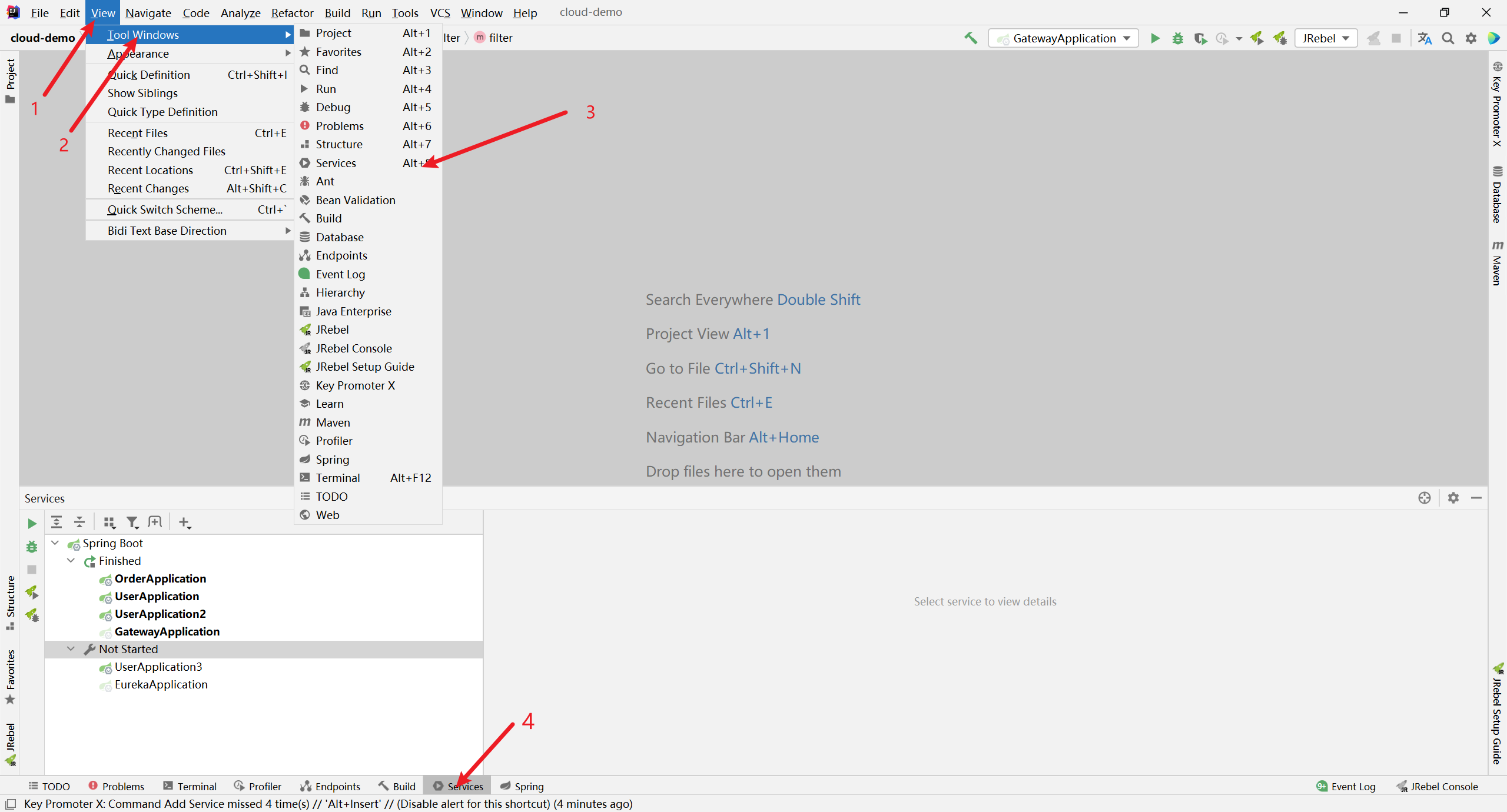 第一次创建微服务项目,如何快速启动多个模块?,idea如何开启Run DashBoard(显示services)缘起 第一次创建微服务项目,发现自己的services不见了,做不到同时启动多个模块,现在已经解决了,怕以后忘了,现在做个记录正文 版权声明:本文为weixin_53041251原创文章,遵循CC 4.0 BY-SA版权协议,转载请附上原文出处链接和本声明。原文链接:https://blog.csdn.net/weixin_53041251/article/details/122531740