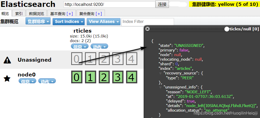 (1)若集群是单节点状态,ElasticSearch默认是有1个副本,主分片和副本不能在同一个节点上,副本就是未分配unassigned因此单节点是不能够分配副本的;