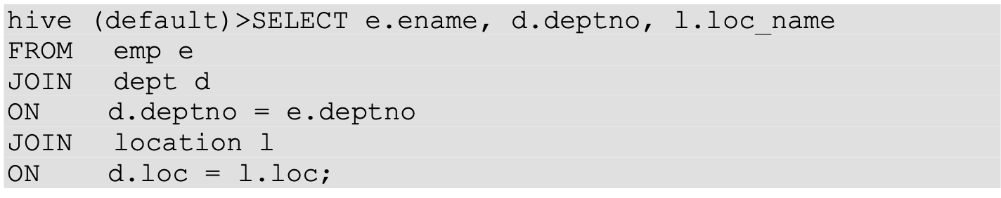 注意:为什么不是表 d 和表 l 先进行连接操作呢?这是因为 Hive 总是按照从左到右的 顺序执行的。