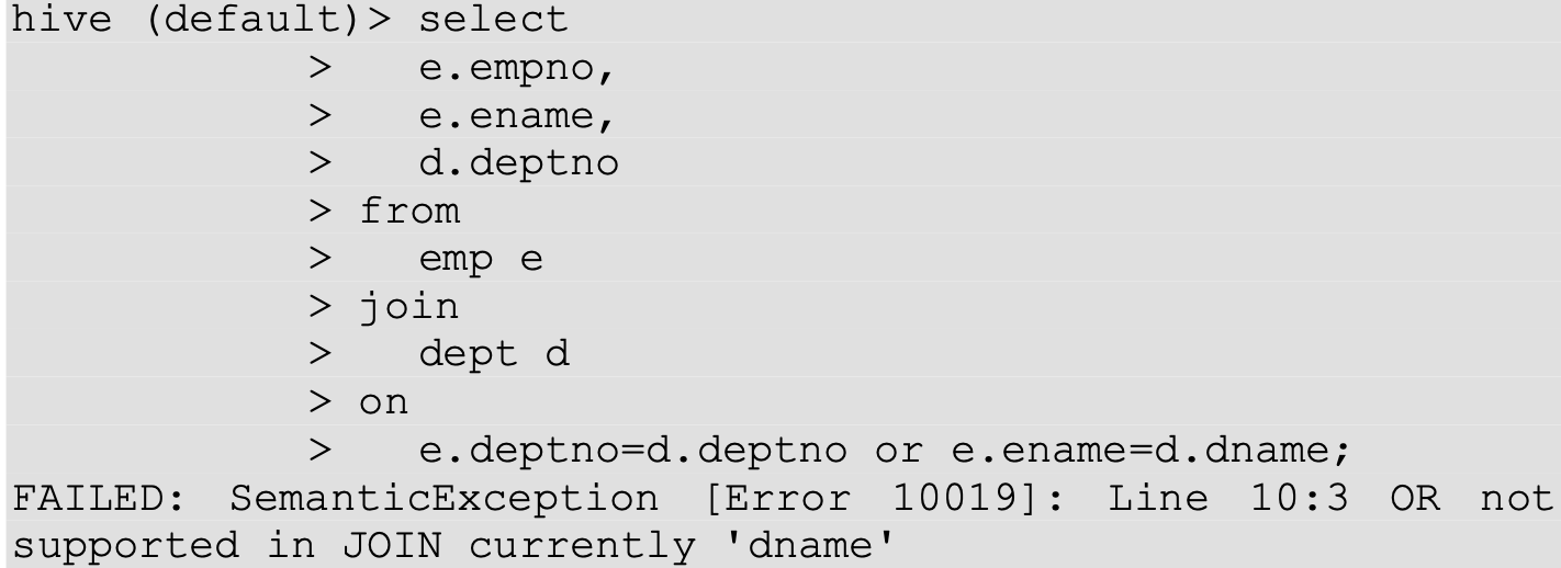 等值 Join:Hive 支持通常的 SQL JOIN 语句,但是只支持等值连接,不支持非等值连接。