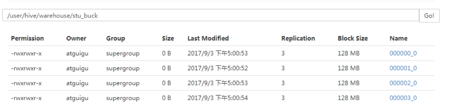 create table stu_buck(id int, name string) clustered by(id) into 4 buckets row format delimited fields terminated by '\t';