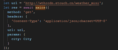 js获取天气预报//引入axiosconst axios = require("axios") 版权声明:本文为m0_56876899原创文章,遵循CC 4.0 BY-SA版权协议,转载请附上原文出处链接和本声明。原文链接:https://blog.csdn.net/m0_56876899/article/details/122698870