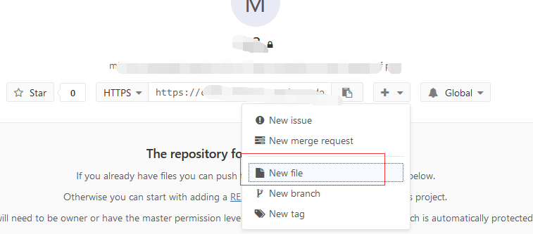 2. 在gitlab页面创建好的project,随便创建一个文件,为了让此项目不为空,这样方便和eclipse建立关系: