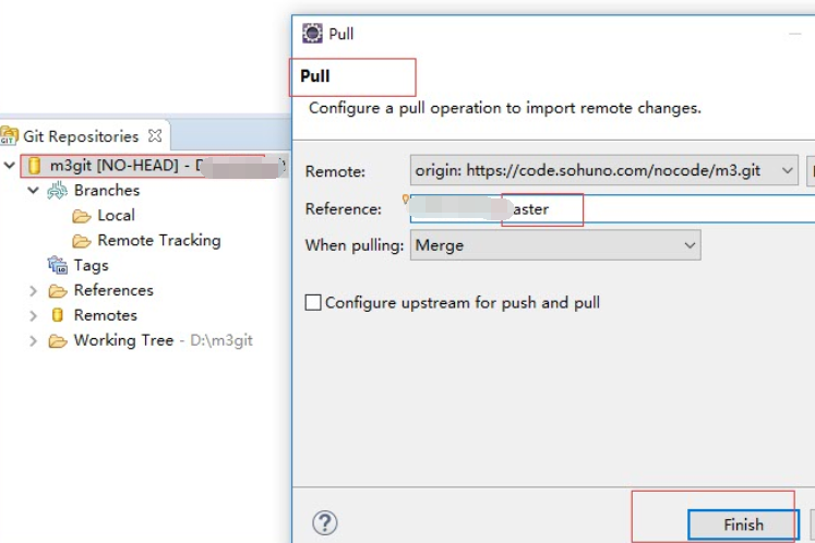 选择pull,然后填写gitbra的地址为项目所在的地址(比如我的项目地址是D:\develop\m3Space\m3)