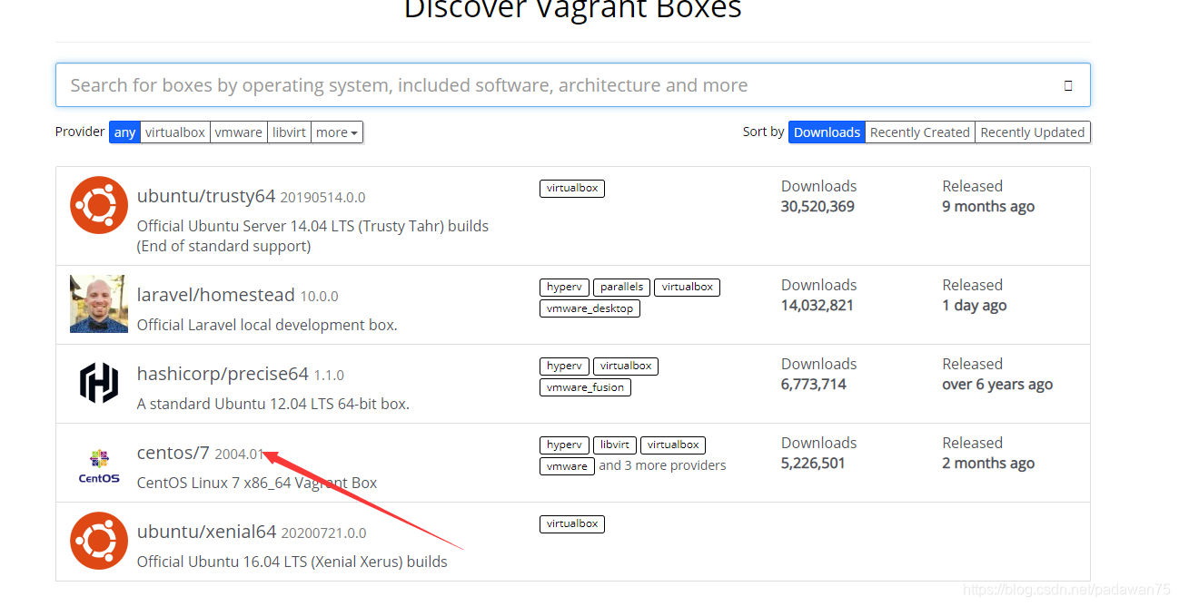 二、点击findbox【寻找box】,进入有很多box的列表 https://app.vagrantup.com/boxes/search