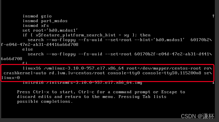 不用管前面内核的意义,每个系统内核启动项都不一样,加配置的时候,最好都在最后加。ctrl+x启动。