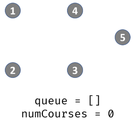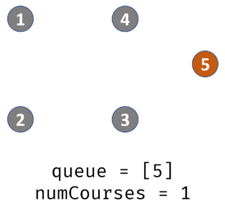 - 若整个课程安排图是有向无环图(即可以安排),则所有节点一定都入队并出队过,即完成拓扑排序。换个角度说,若课程安排图中存在环,一定有节点的入度始终不为 0。