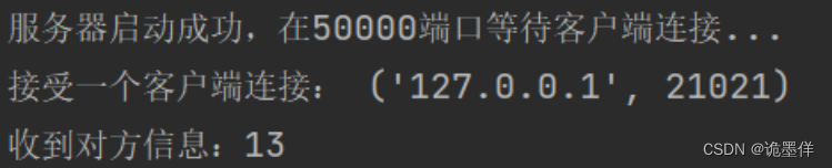 print(f'服务端启动成功,在{PORT}端口等待客户端连接...')