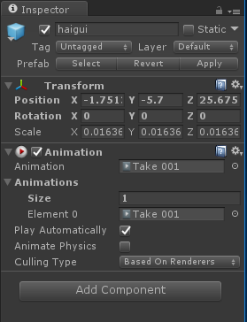 导入模型-Inspector中只有Animation组件而没有Animator组件,打开Animation窗口显示Read-Only