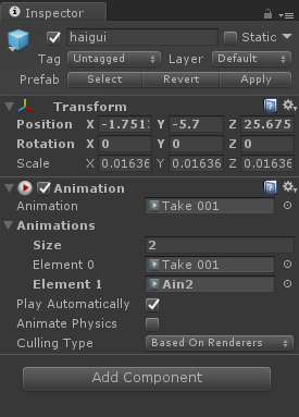 点击模型--在Inspector视窗中--Animation组件--中的Size改为2