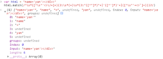 如上图,html是通过advance函数截取剩下的template,返回的是首次匹配的数组,数组1,2,3,4,5分别是分组里正则匹配的字符串