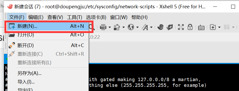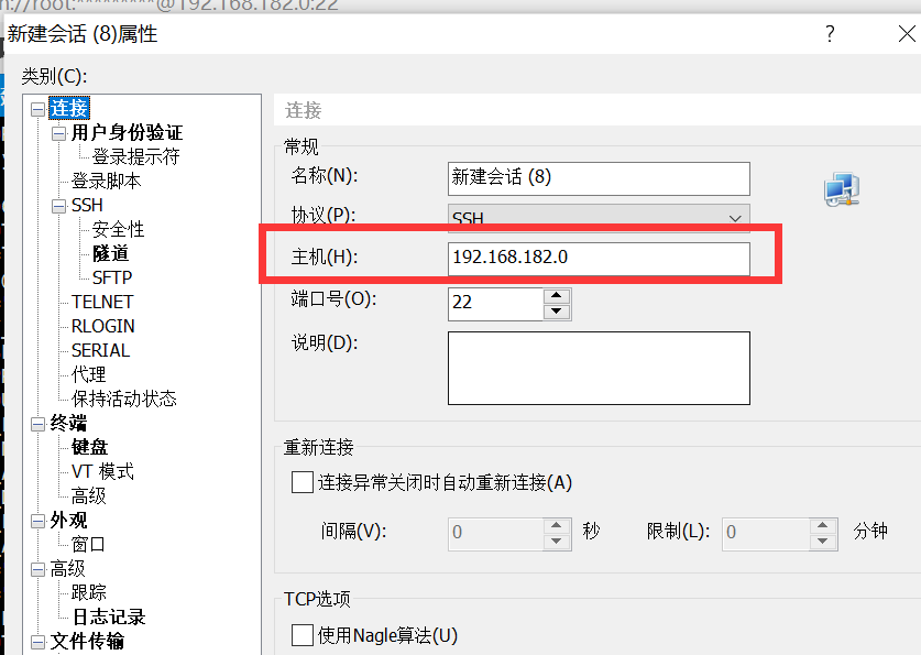 然后打开xshell 新建连接 上图锁圈数字 即为ip