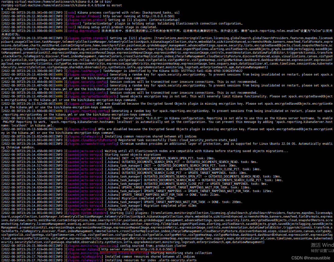 root@zq-virtual-machine:/home/elasticsearch/kibana-8.4.0/bin# su esroot