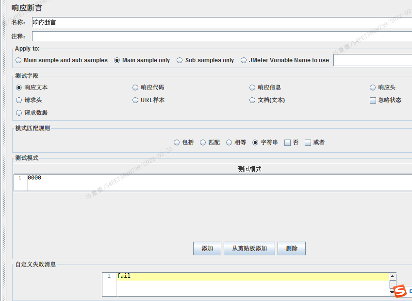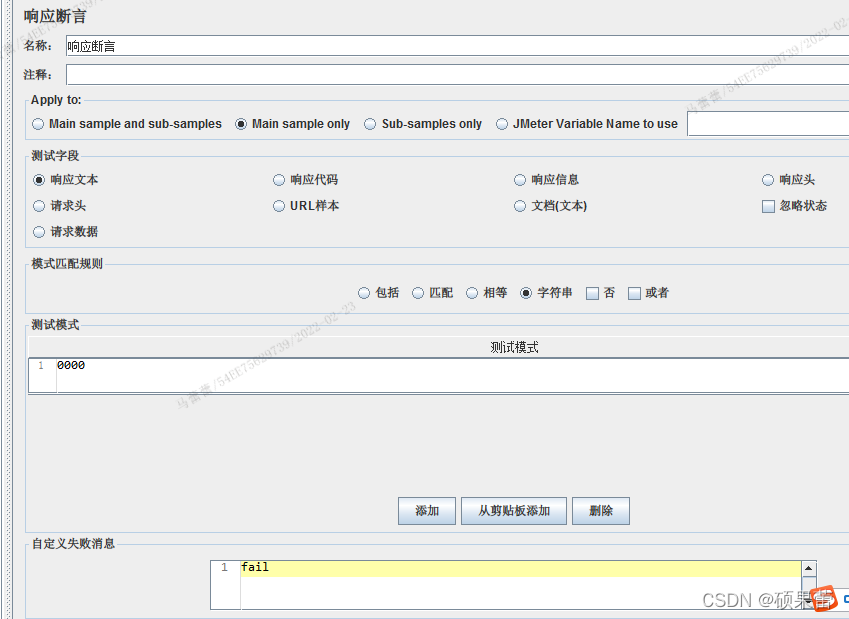断言的请求邮件——添加——断言——响应断言