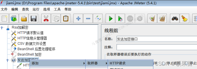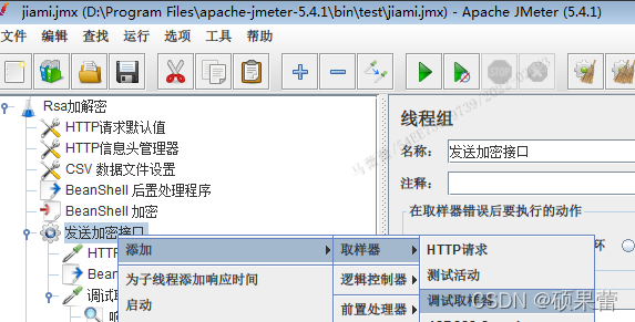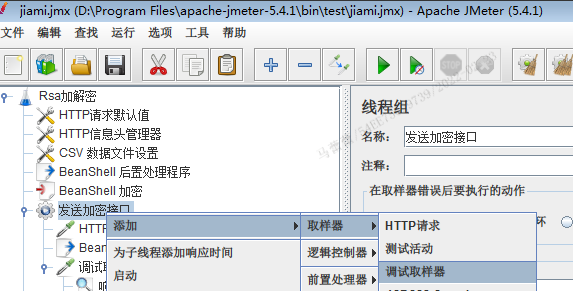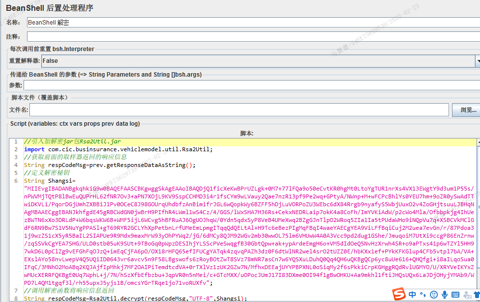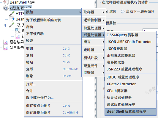八、添加Beanshell后置处理程序,将HTTP的响应信息进行解密