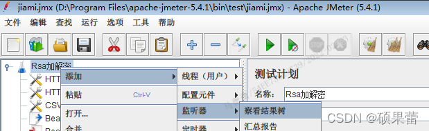 线程组右键——添加——监听器——察看结果树