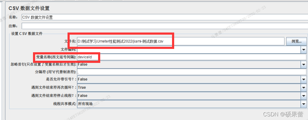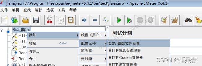 测试计划右键——添加——配置元件——CSV数据文件设置