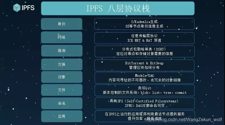 IPFS(The InterPlanetary File System,星际文件系统), 是一个面向全球的、点对点的分布式版本文件系统,目标是为了补充(甚至是取代)目前统治互联网的超文本传输协议(HTTP),将所有具有相同文件系统的计算设备连接在一起。