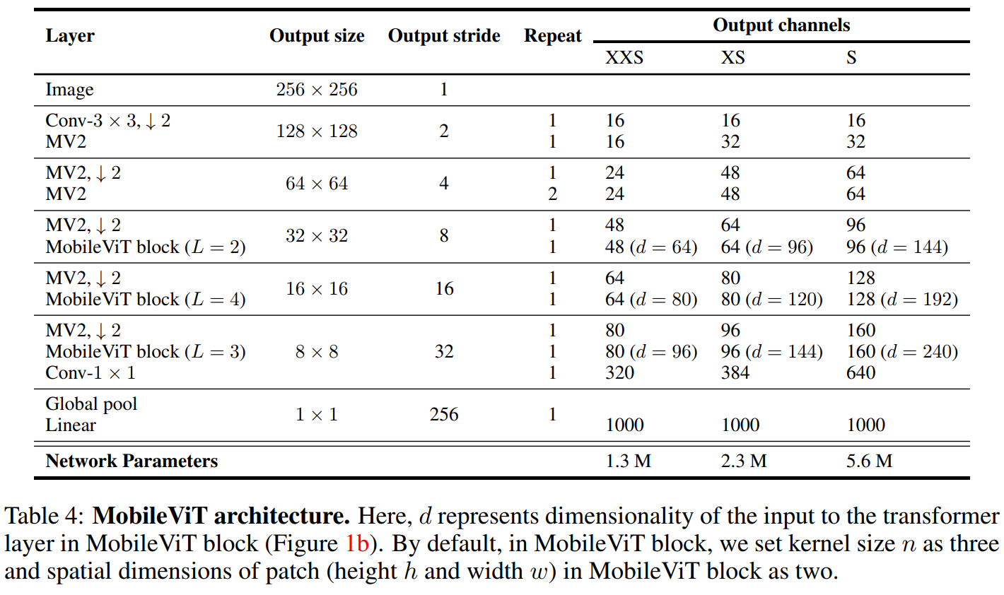 MobileViT包含3个基本模型,(S: small, XS: extra small, XXS: extraextra small)