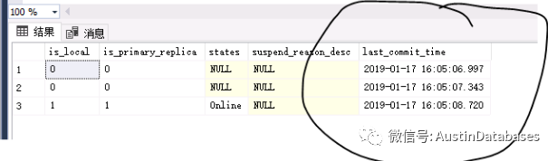 所以打破一个概念就是 SQL SERVER AWO 同步复制,主从数据就一定百分百时间一致,NO NO NO 我查看了 目前的生产库, MYSQLER们可以理解为 behind master 当然 SQL SERVER 高大上,时间都显示了,差多少都心里有数。