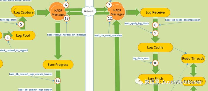 5 LOG 被物理的FLUSH 到从库的LDF 文件中,并且会给 主库一个 ACK(这让我想起MYSQL 的半同步)