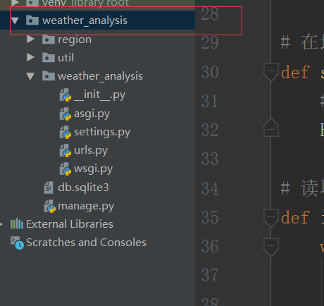 图中最上面的weather_analysis设置成Sources Root,设置完后,它的颜色会变成蓝色