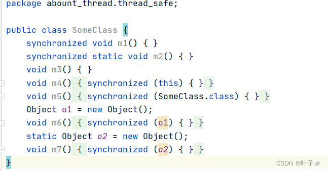 ②static synchronized void method(){} 等价于 static void method(){synchronized (类.class){} }