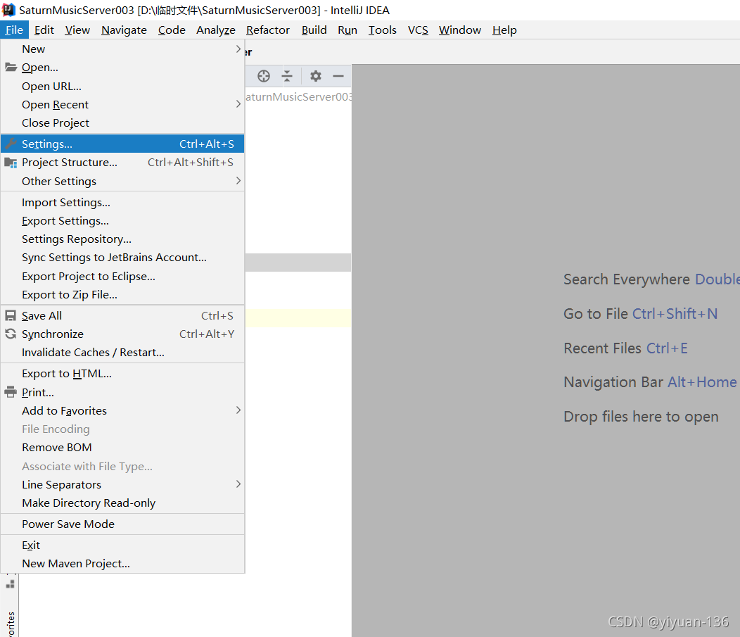1、随意打开一个项目,选择file,点击Settings