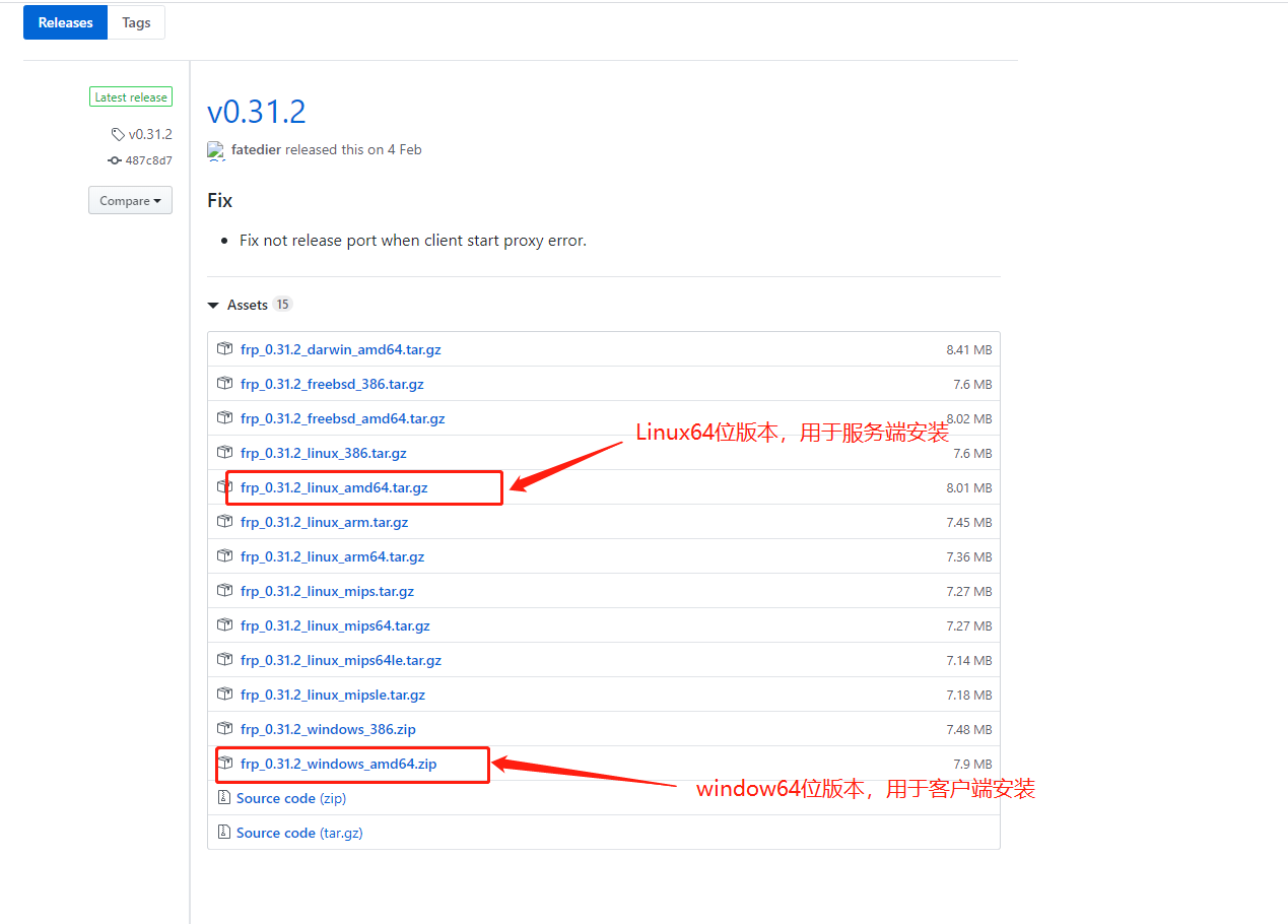 将 frp_0.31.2_linux_amd64.tar.gz 传输到服务器并解压,这是解压后的内容: